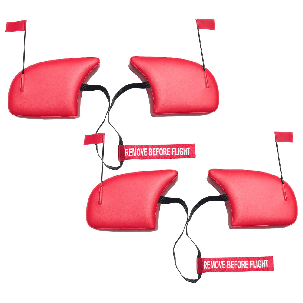 Our custom-fit cowl plugs are constructed of marine grade vinyl with an abrasion rating of 100,000 double rubs. All our cowl plugs are sewn with bonded nylon thread being one of the strongest threads used today. The cowl plugs are connected by a 36" x 1" black polypropylene webbing. Each set of cowl plugs includes a 12" x 2" bright red safety streamer with bright white eye-catching REMOVE BEFORE FLIGHT text attached for safety. As a secondary precaution each set of cowl plugs will also include (2) 10" long safety flags that get attached to each of the plugs which can easily be seen from the pilot seat. This aids the pilot in removing the plugs from the engine cowling before starting the engine.