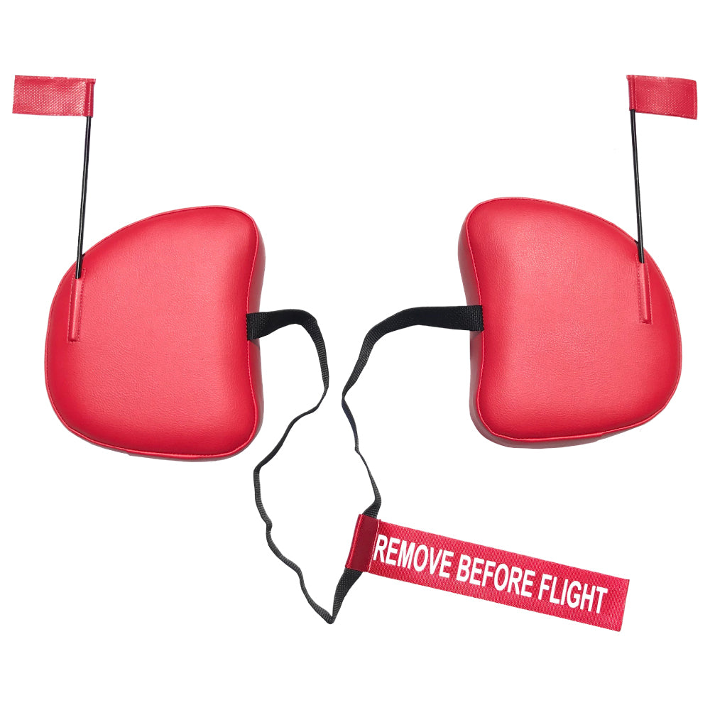 Our custom-fit cowl plugs are constructed of marine grade vinyl with an abrasion rating of 250,000 double rubs (ASTM D4157). All our cowl plugs are sewn with bonded nylon thread being one of the strongest threads used today. The cowl plugs are connected by a 36" x 1" black polypropylene webbing. Each set of cowl plugs includes a 12" x 2" bright red safety streamer with bright white eye-catching REMOVE BEFORE FLIGHT text attached for safety. As a secondary precaution each set of cowl plugs will also include (2) 10" long safety flags that get attached to each of the plugs which can easily be seen from the pilot seat. This aids the pilot in removing the plugs from the engine cowling before starting the engine.