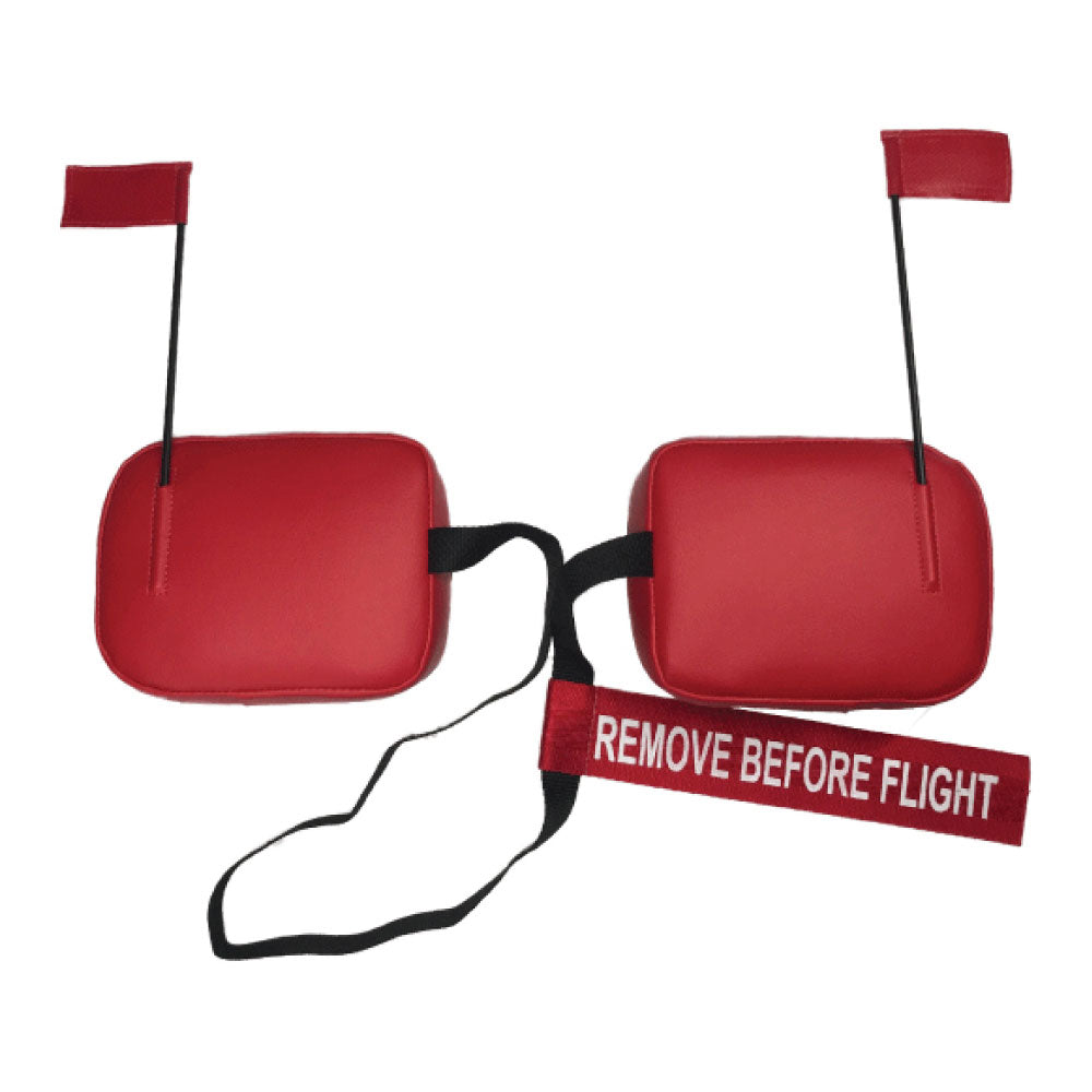 Our custom-fit cowl plugs are constructed of marine grade vinyl with an abrasion rating of 250,000 double rubs (ASTM D4157). All our cowl plugs are sewn with bonded nylon thread being one of the strongest threads used today. The cowl plugs are connected by a 36" x 1" black polypropylene webbing. Each set of cowl plugs includes a 12" x 2" bright red safety streamer with bright white eye-catching REMOVE BEFORE FLIGHT text attached for safety. As a secondary precaution each set of cowl plugs will also include (2) 10" long safety flags that get attached to each of the plugs which can easily be seen from the pilot seat. This aids the pilot in removing the plugs from the engine cowling before starting the engine.