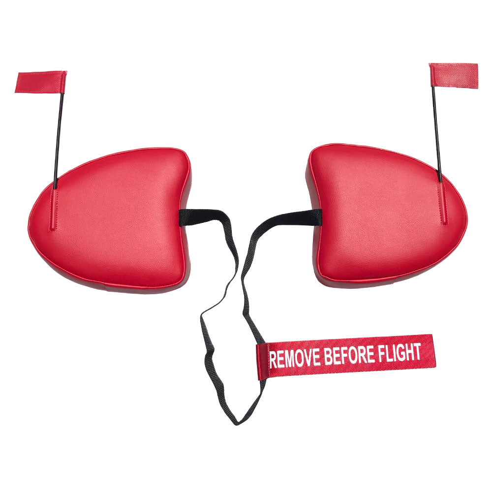 Our custom-fit cowl plugs are constructed of marine grade vinyl with an abrasion rating of 250,000 double rubs (ASTM D4157). All our cowl plugs are sewn with bonded nylon thread being one of the strongest threads used today. The cowl plugs are connected by a 36" x 1" black polypropylene webbing. Each set of cowl plugs includes a 12" x 2" bright red safety streamer with bright white eye-catching REMOVE BEFORE FLIGHT text attached for safety. As a secondary precaution each set of cowl plugs will also include (2) 10" long safety flags that get attached to each of the plugs which can easily be seen from the pilot seat. This aids the pilot in removing the plugs from the engine cowling before starting the engine.